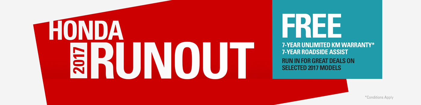 Terms & Conditions Offers available at participating Honda Dealers, whilst stocks last, on new and ex-demo 2017 build CR-V VTi 2WD, VTi-S 2WD, VTi-L 2WD, VTi-S AWD, and VTi-LX AWD models purchased 1.2.18 - 28.2.18 and delivered before 28.2.18. Private buyers only. Honda reserves the right to change or extend any offers. Honda reserves the right to change or extend any offers. oDrive away price shown available at participating Honda Dealers, while stocks last, on new and ex demo CR-V 2WD VTi Auto purchased and delivered 1.2.18-28.2.18. +7-Year Unlimited Kilometre Warranty available on new and ex-demo 2017 build CR-V models purchased between 1.2.18-28.2.18 and delivered before 28.2.18, except those used for commercial purposes, where a 7-year/200,000 kilometre (whichever occurs first) warranty is applicable. Honda warranties apply where due care is exercised by the owner and the vehicle is maintained in accordance with the Owner's Warranty and Service Manual. Please visit honda.com.au/warranty for full terms and conditions. *The price is a recommended drive away price for vehicle with flat paint at participating Honda Dealers while stocks last. It includes 12 months registration, 12 months compulsory third party insurance (CTP), a maximum dealer delivery charge, stamp duty and administration charge.